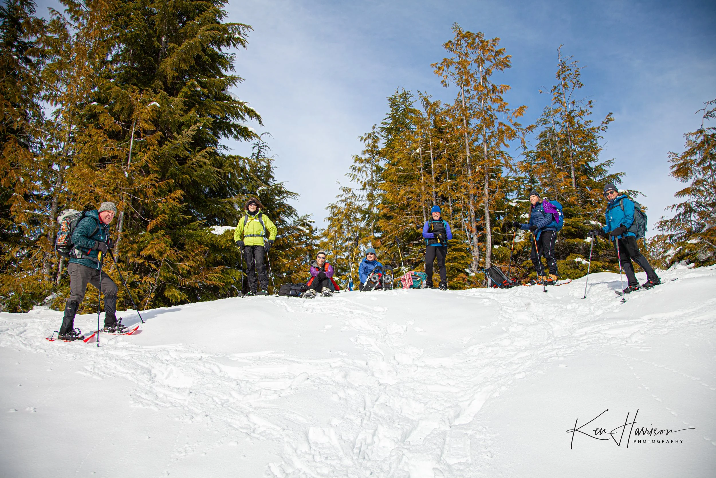 8 Boomers snowshoed to The Knob on a beautiful Spring day in April.